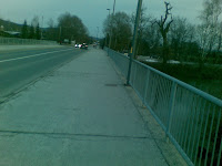 Še ena bolj boga a razmeroma prometna cesta in pokopališče in že je mimo četrti kilometer. Potem pa - Samo in Aleš, pozor! - glave dol!! V vseh stotih letih odkar obstaja podhodek, se niti eni ablasti ni zdelo vredno truda da bi tunelček malo poglobili.